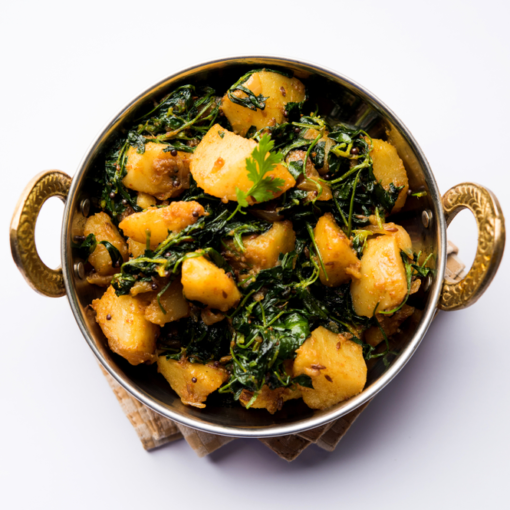 Potatoes and fenugreek leaves cooked in Indian spices